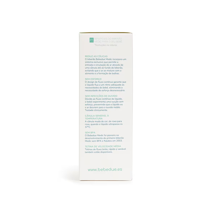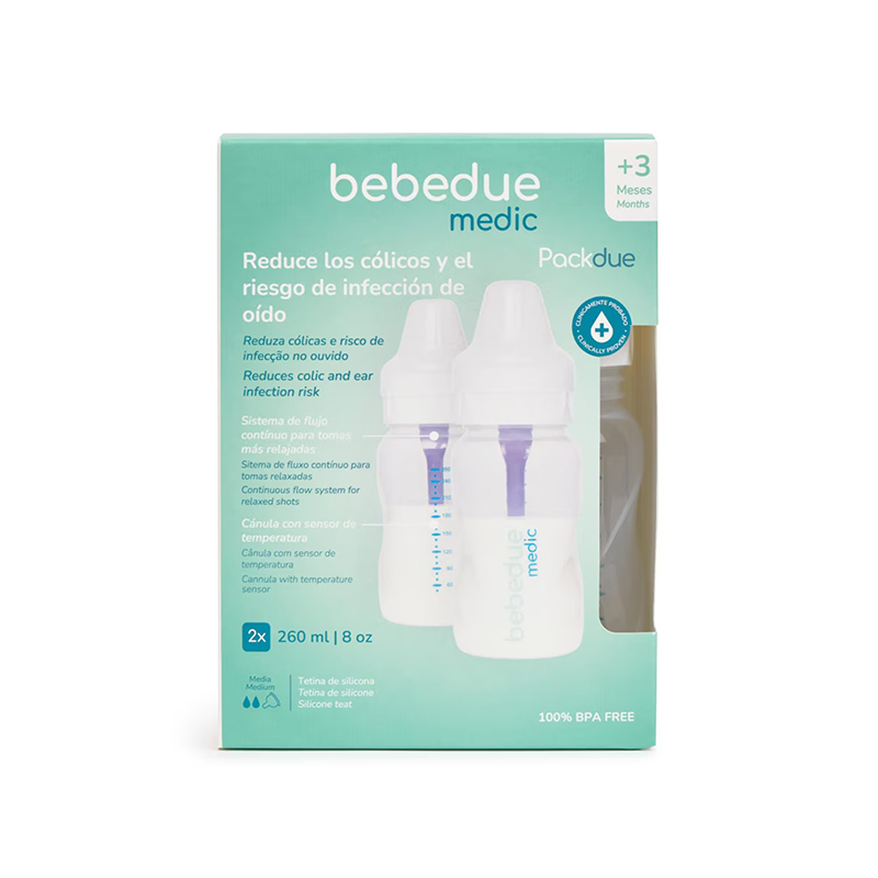 El pack de dos biberones Bebedue Medic 260 ml ofrece una solución práctica y segura para el día a día. Ideal para bebés en sus primeros meses, combina funcionalidad, confort y un diseño pensado para facilitar la alimentación. Su sistema de ventilación ayuda a reducir los cólicos y el flujo constante permite que el bebé succione de forma natural y sin interrupciones.
