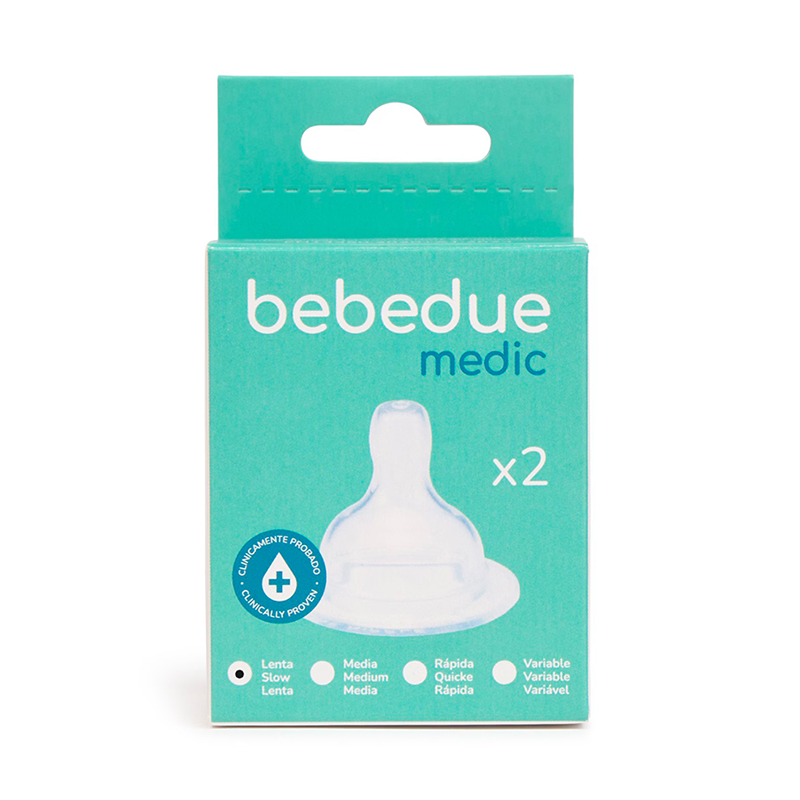Las tetinas Bebedue Medic de flujo lento están diseñadas especialmente para los primeros meses del bebé, cuando necesita un ritmo de alimentación suave y constante. Su sistema anticólicos reduce la ingesta de aire, evitando gases y molestias. Fabricadas en silicona médica ultrasuave, ofrecen una textura natural que imita el pecho materno, favoreciendo la lactancia mixta.
